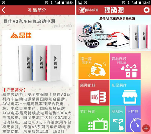 從昨天開始“搖一搖”第三波的送歡樂活動熱鬧來襲,都市頻道主持變快遞員,好禮送到家。搖友們熱情高漲,昂佳汽車電源半小時內兌換量破千!可謂成績斐然!產品深受汽車用戶的喜愛,實為汽車啟動電源行業領導品牌 。